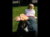 Description: Here is the long and lanky Kenlyn. She starts off this photoset standing in a field where she is wearing a pair of well-worn flip-flop sandals. She quickly steps out of them and puts her sexy bare feet on the warm grass. Kenlyn, already barefoot, then lays down in THE POSE, where she throws her bare feet up into the air behind her so that you can gaze at her smooth and sexy soles. After some nice close-ups of the bottoms of her feet, Kenlyn sits up and pushes her long legs out, letting you check out the tops of her feet and her toes. She then gets on all fours and puts her soles behind her, letting you get another great glimpse at her smooth feet. This is a great photoset from a very Sexy Barefoot Girl.
